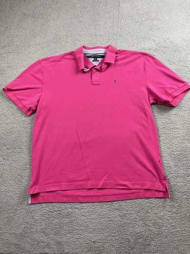 Tommy Hilfiger Polo Shirt Adult Xxl Pink Blue Red Flag Logo Cotton Rugby Mens Ebay