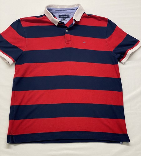Tommy Hilfiger Polo Shirt Men L G Red White Blue Stripes Short Sleeve Ebay